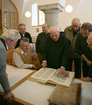 The courses for first timers are two weeks long and held, so far, only in German. Those who have participated have the option of a “Repeat Retreat” for a week several times a year. During this time the participants, who are quite diverse in age, profession and faith, have an opportunity to merge with the rhythms of monastic life, they sit with the monks during services and eat with them in the rectory. During this time they wear a choir robe that is very similar to the habit of the monks. In an introduction they receive the explanation of the rich symbolism of the robe. It makes a deeper participation in the monastic rites and gestures possible and is meant as a help in maintaining silence and prayer.