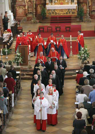 According to the time of day and the time of year, church services take place either in the simplicity of the smaller cloister chapel or in the richly decorated Baroque basilica.