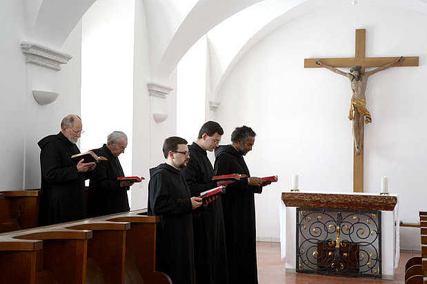 They strive to cultivate the richness of tradition of western monasticism, as well as to integrate liturgical developments since Vatican Council II. This means that in the four daily times of prayer, the traditional Latin is used (in Vespers and on Feastdays), as well as German (in Morning Song, Noontime Prayer and Compline on normal days). In the daily celebration of mass Latin chorale and German hymns both play a role.