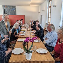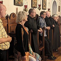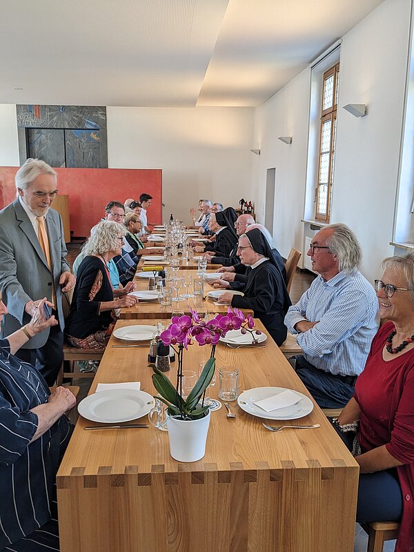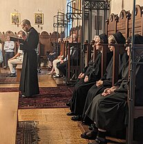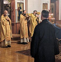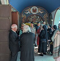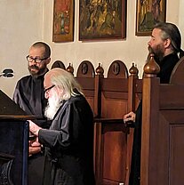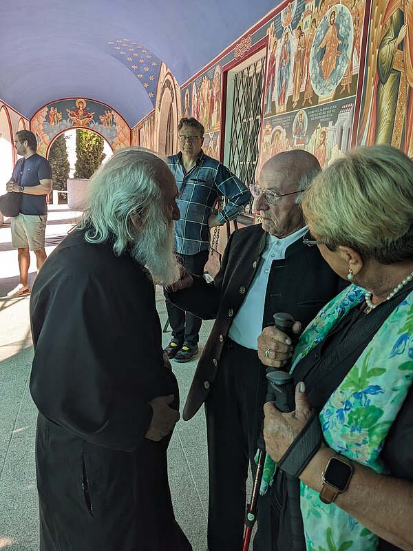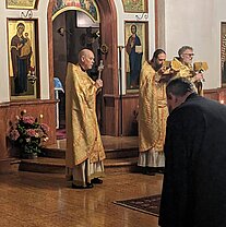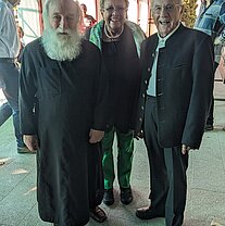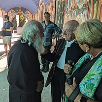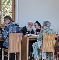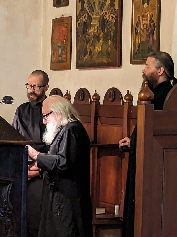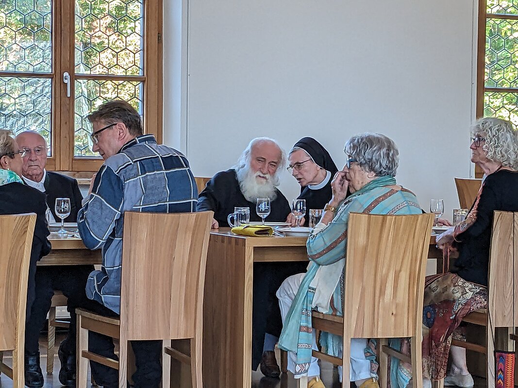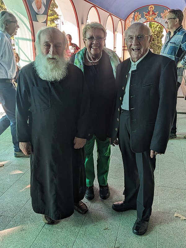 Zur Feier des 90. Geburtstags des Altersseniors unserer Bruderschaft, fr. Markus, versammelten sich der Konvent und die geladenen Geschwister, Verwandte und Freunde des Jubilars bereits am Vortag, dem 7. September. Im Unterschied zu vielen heutigen „jungen Alten“, die ewig jung bleiben wollen, ein entsprechendes Styling und mitunter den „Kick bis zum letzten Augenblick“ verfolgen, sah Abt Marianus in seiner Predigt bei der Göttlichen Liturgie unseren Frater Markus als einen von den „alten Alten“, denen man ihr würdiges Alter auch ansehen darf. Er und die Mitbrüder dankten ihm für so viele Jahre treuen Dienst im Mönchschor, der Schneiderei, im Refektorium und vielen anderen Orten.