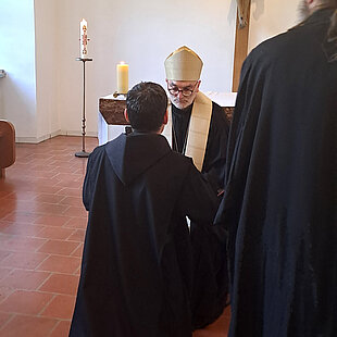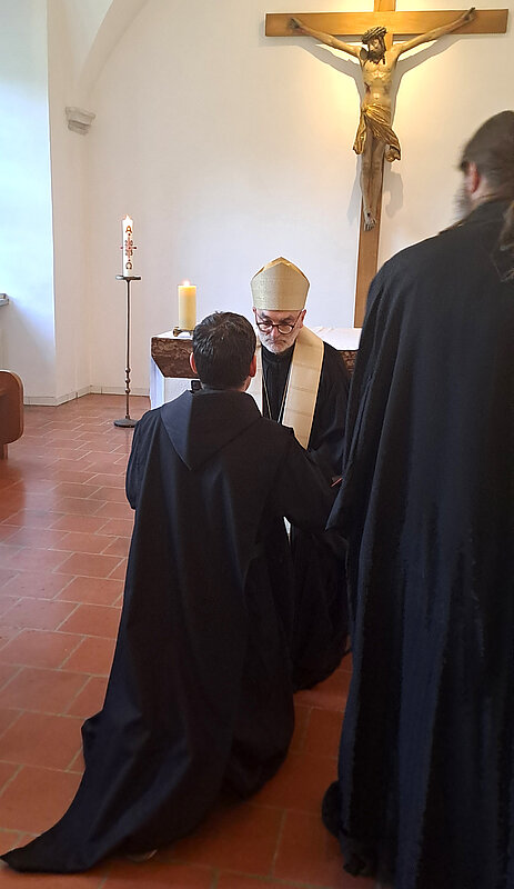 Am 29. Mai konnten wir in unserer Hauskapelle vor der Komplet unser Kandidaten, Herrn Steinsiek, mit der Einkleidung ins Noviziat aufnehmen. Als Patron für seinen klösterlichen Weg erhielt er unseren 2001 seliggesprochenen Oblaten und Martyrer Petro Werhun (1890–1957), der als Seelsorger der Ukrainer die erste Göttliche Liturgie in unserer Abtei gefeiert hat. Frater Petro ist mit 26 Jahren der jüngste Mitbruder in unserer Gemeinschaft.