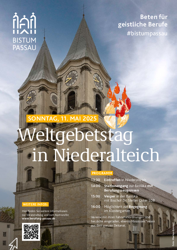 Am Sonntag, dem 11. Mai 2025, fand das diözesane Gebetstreffen anlässlich des Weltgebetstags für geistliche Berufe unter dem Motto „Pilger der Hoffnung“ in unserer Pfarrei und unserem Kloster statt. Hier einige Bilder der Stationen u.a. in der Byzantinischen Kirche und in der Basilika. → zum Bericht auf den Bistumsseiten Alle Bilder von Stefanie Hintermayr: