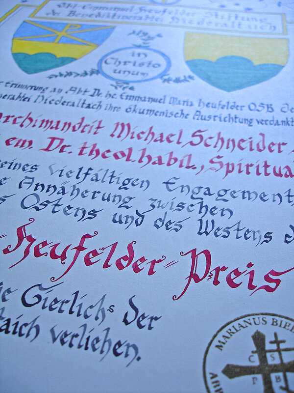 Die Abtei Niederaltaich verleiht den Preis zum zwölften Mal im Gedenken an ihren 1982 verstorbenen Abt Emmanuel Maria Heufelder. Der Preis wurde der Abtei und ihrem Ökumenischen Institut in Form einer Stiftung von privater Seite anvertraut zur Würdigung von Einrichtungen und Personen, die sich in besonderer Weise für die ökumenische Verständigung und Annäherung zwischen der katholischen Kirche und den Ostkirchen engagieren. Der Preis ist diesmal mit 5.000 Euro dotiert.