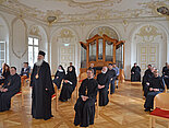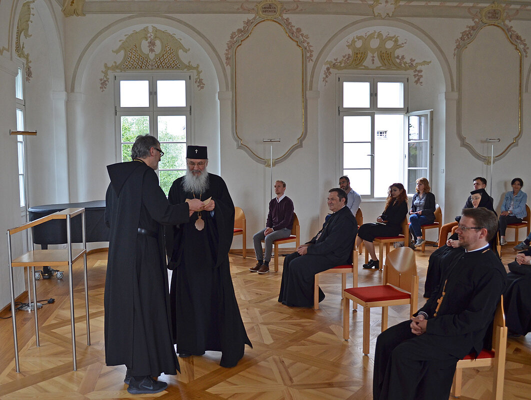 Aufgrund der Pandemie haben wir die Verleihung in einem kleinen Rahmen begangen, verbunden mit einer Begegnung unserer beiden Gemeinschaften in Nürnberg und Niederaltaich. Als Gäste waren ferner einige Stipendiaten des Förderprogramms der Deutschen Bischofskonferenz aus Paderborn mit dabei, die das Wochenende in unserer Abtei verbrachten.