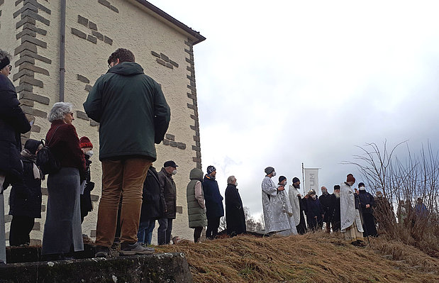Beim Rückweg in die Kirche - (etwas) Schnee und Eis kamen dieses Jahr erst am Nachmittag.