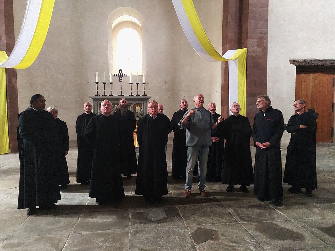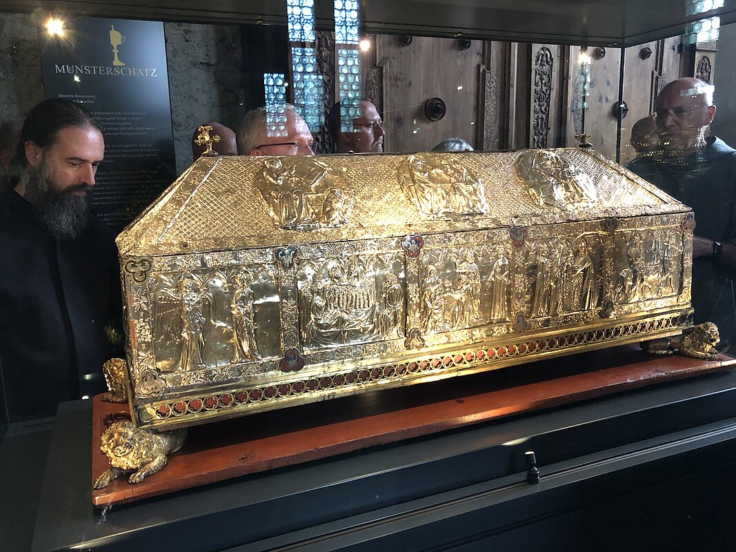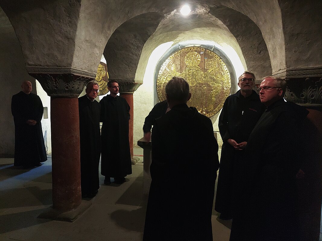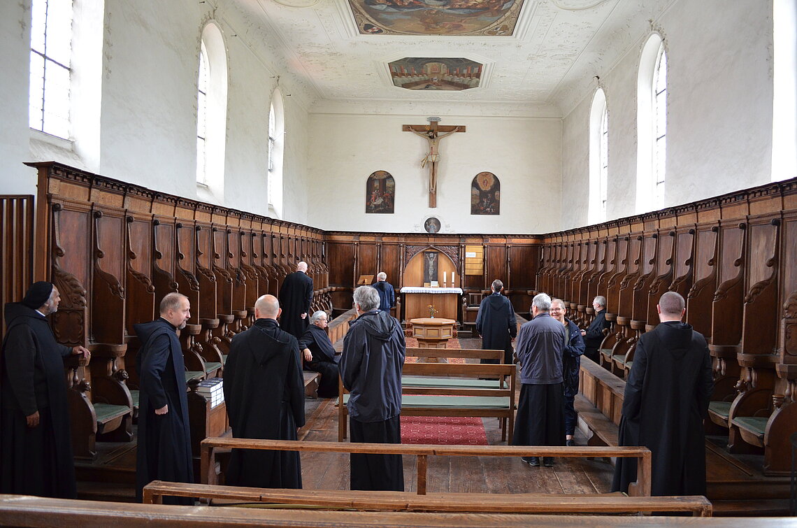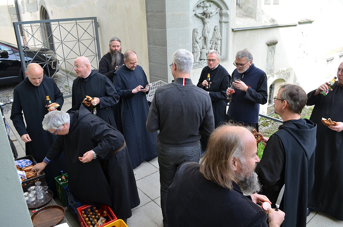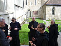 Anlass war u.a. die Landesausstellung "Welterbe des Mittelalters – 1300 Jahre Klosterinsel Reichenau" im Archäologischen Landesmuseum Baden-Württemberg in Konstanz mit Leihgaben auch aus unserer Abtei (daher: freier Eintritt für uns). Da ein solcher Besuch der Ausstellung und der Klosterinsel mit ihren drei Kirchen ohne Übernachtung kaum möglich ist, haben wir unseren Konventausflug, der ja wegen Corona die letzten Jahre ausfallen musste, entsprechend verlängert und zu einer Pilgerfahrt auch zu unseren "ideellen Wurzeln" gestaltet.