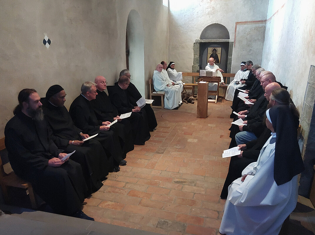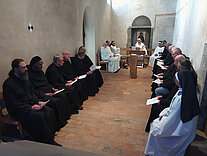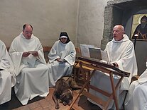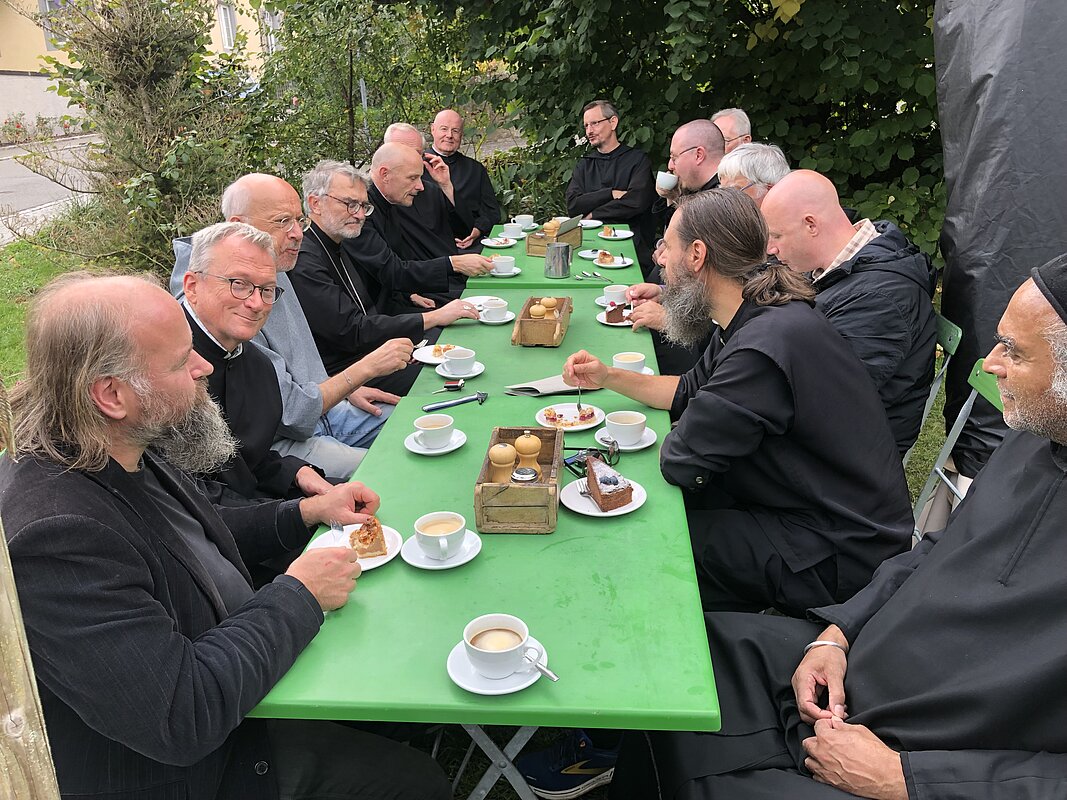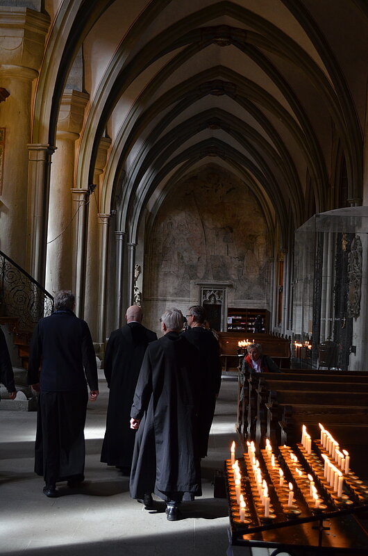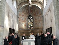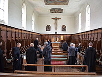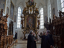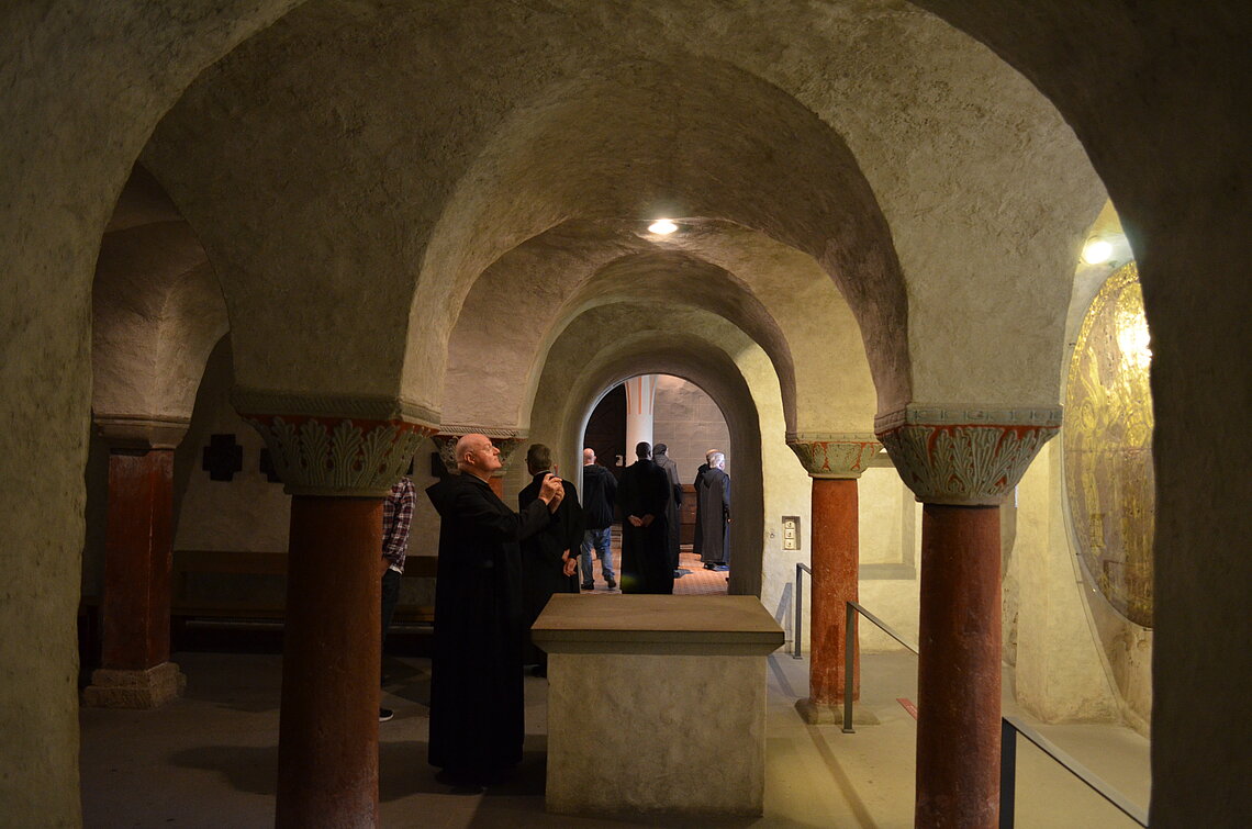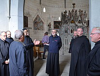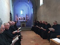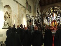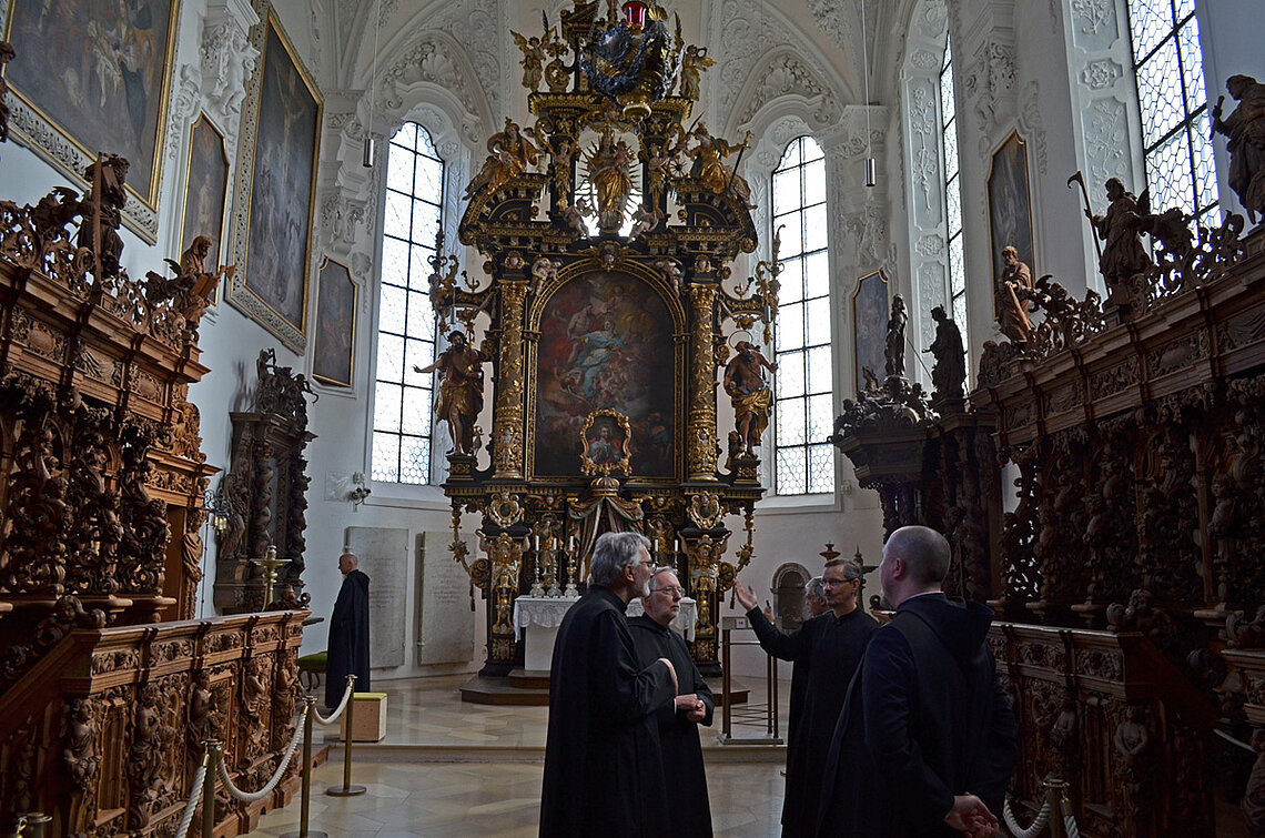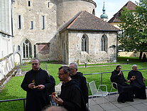 Anlass war u.a. die Landesausstellung "Welterbe des Mittelalters – 1300 Jahre Klosterinsel Reichenau" im Archäologischen Landesmuseum Baden-Württemberg in Konstanz mit Leihgaben auch aus unserer Abtei (daher: freier Eintritt für uns). Da ein solcher Besuch der Ausstellung und der Klosterinsel mit ihren drei Kirchen ohne Übernachtung kaum möglich ist, haben wir unseren Konventausflug, der ja wegen Corona die letzten Jahre ausfallen musste, entsprechend verlängert und zu einer Pilgerfahrt auch zu unseren "ideellen Wurzeln" gestaltet.