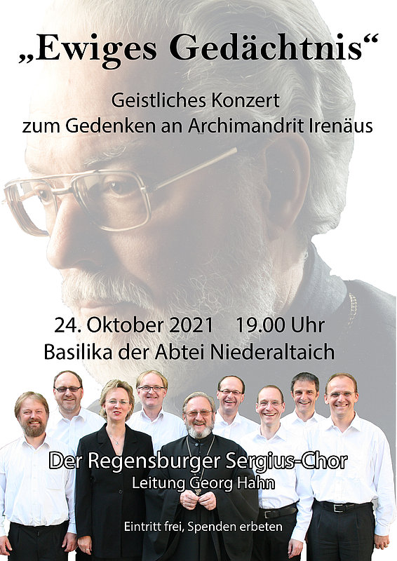 Am Sonntag, dem 24. Oktober 2021, gab der Regensburger Sergius-Chor in der Basilika ein Konzert, das dem Gedenken des 2013 verstorbenen Niederaltaicher Mönchs Irenäus Totzke gewidmet war.