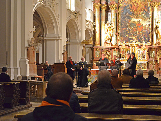 Der Chorleiter Georg Hahn, ein ehemaliger Schüler im „Seminar St. Godehard“, berichtete über seine Begegnungen mit Archimandrit Irenäus und wählte exemplarische Kompositionen aus dessen verschiedenen Schaffensperioden.