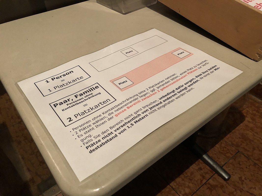 Finden Sie beim Eingang keine Karten mehr vor, sind folglich alle Plätze besetzt und kein Eintritt mehr möglich.