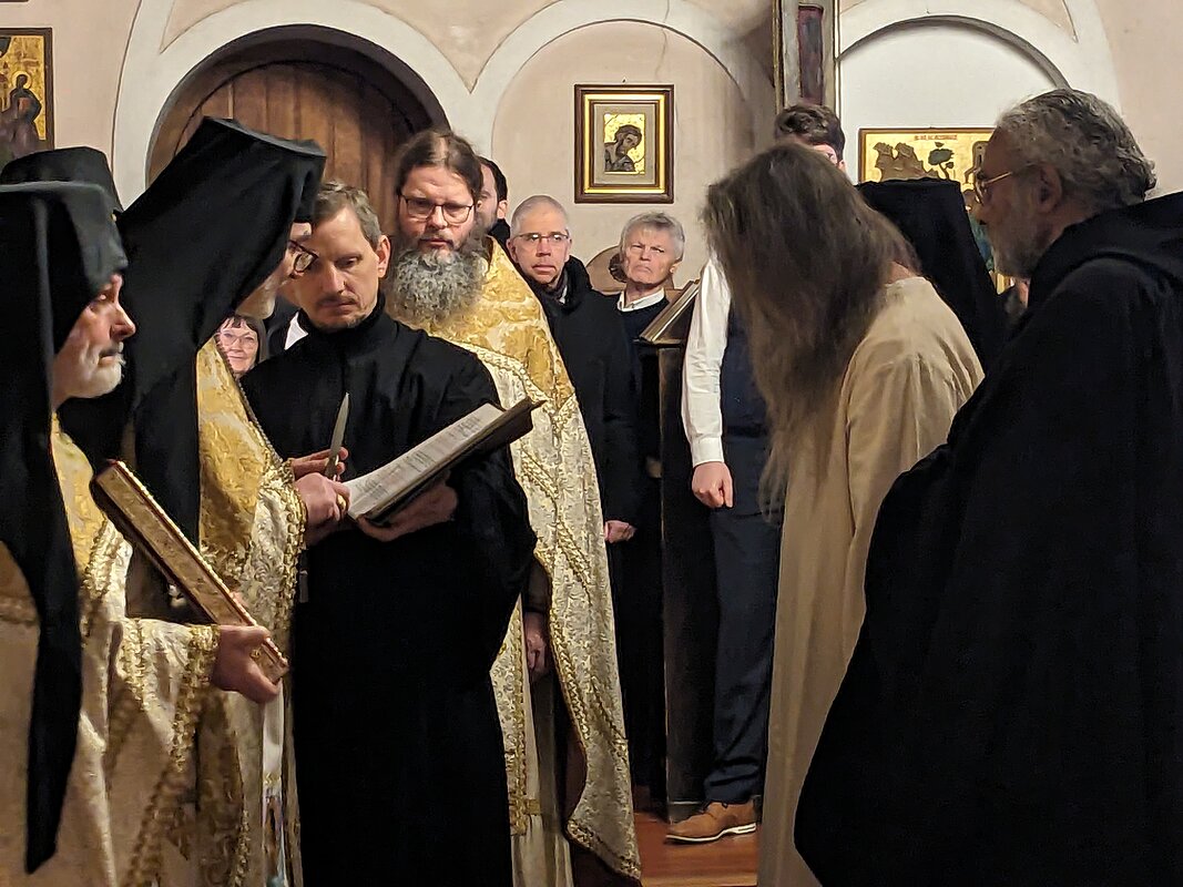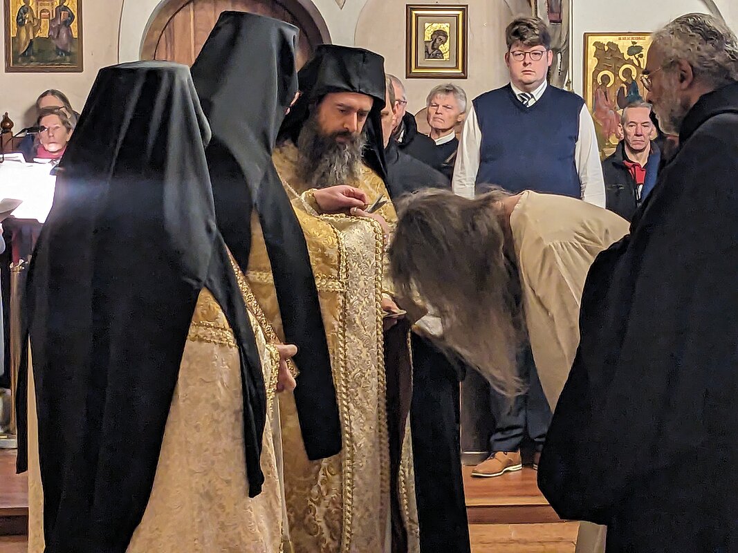 Inmitten der Niederaltaicher Bruderschaft sowie zahlreich erschienener Freunde und Gäste aus Nah und Fern – einschließlich der umliegenden Kirchengemeinden – empfing unser Mitbruder Symeon-Maria die Mönchstonsur durch Abt Marianus. Im Anschluss an die Göttliche Liturgie waren alle eingeladen in die Turnhalle zu Imbiss, Kaffee und Kuchen – eine große Agape in christlicher Gemeinschaft und Freude.