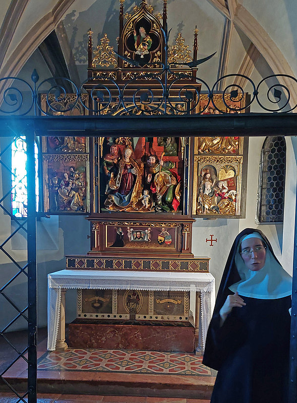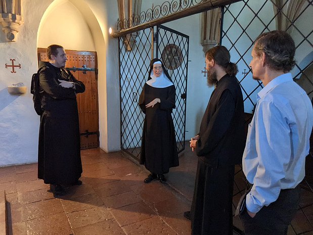 Dort empfing uns die Priorin und Magistra, also die Novizenmeisterin des Klosters, Frau Eva-Maria mit Keksen und Getränken und nahm sich ausgiebig Zeit für unsere Fragen zum konkreten Leben der knapp 15 Schwestern. Anschließend folgte eine kurze Führung durch die beeindruckende Klosteranlage mit ihren alten, verwinkelten Gängen und der gotischen Abteikirche. Den tiefsten Eindruck hinterließen bei uns jedoch nicht die wunderschöne Anlage und die grandiose Aussicht auf die umliegenden Berge, sondern vor allem der Ernst und die Freude, mit denen die Schwestern versuchen, das benediktinische Ideal in ihrem Alltag zu verwirklichen.