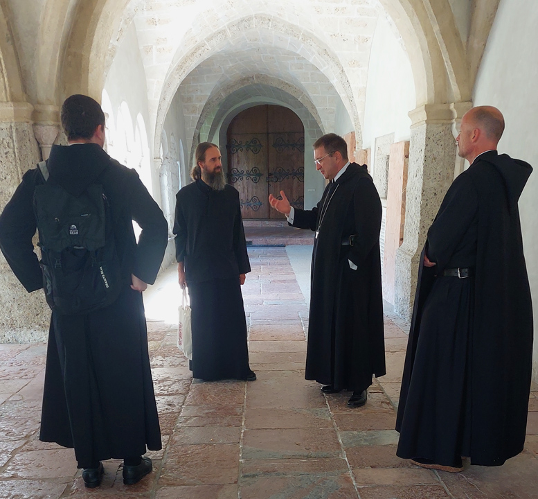 Am Morgen des 25. August machte sich in aller Frühe, gegen sechs Uhr, unsere über die letzten Monate gewachsene Gruppe von zwei Novizen und einem Kandidaten zusammen mit ihrem Novizenmeister auf den Weg in die ca. 200 Kilometer entfernte Stadt Salzburg. Nach einer kleinen Odyssee mit dem Auto durch die Salzburger Altstadt – auf die moderne GPS Technik ist heute leider kein Verlass mehr – erreichten wir das zu Beginn des 8. Jahrhunderts von der heiligen Erentrudis gegründete Stift Nonnberg.