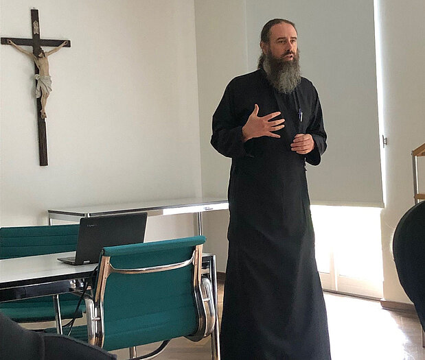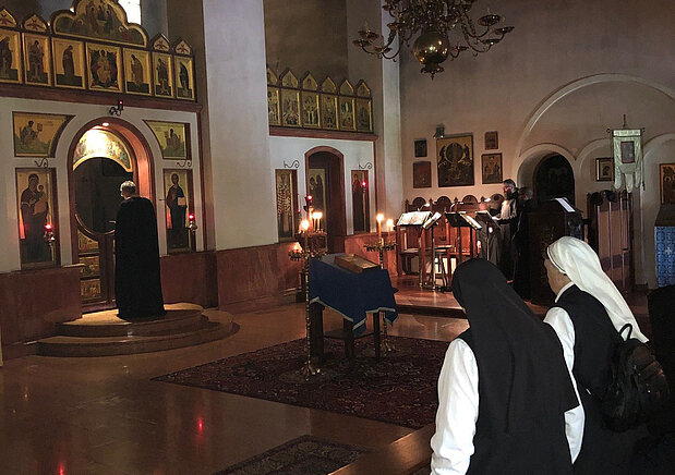 Im September durften wir im Wochentakt verschiedenen Gruppen Einblicke in ostkirchliches liturgisches und geistliches Leben vermitteln. Den Anfang machten die zur Noviziatswerkwoche angereisten Schwestern und Brüder bayerischer Abteien. Dann war vom 15.-17. September das Konfessionskundliche Institut des Evangelischen Bundes in Bensheim mit einem Aufbaukurs zum Thema “Gottesdienst, Liturgie und Raum” zu Gast.