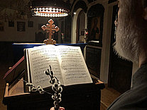 ... stellen wir mystisch im Abbild dar ..." Beim Zelebranten- und Sängerdienst wechseln wir täglich ab.