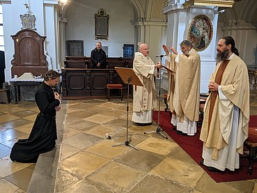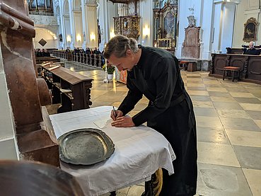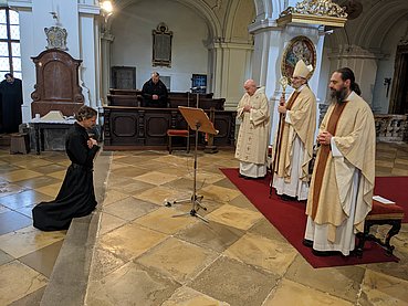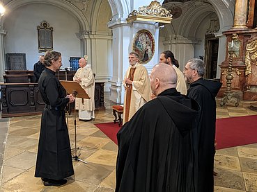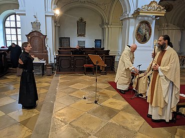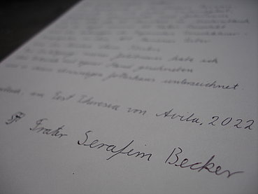 Fr. Serafim verliest die Professurkunde und verspricht für drei Jahre
