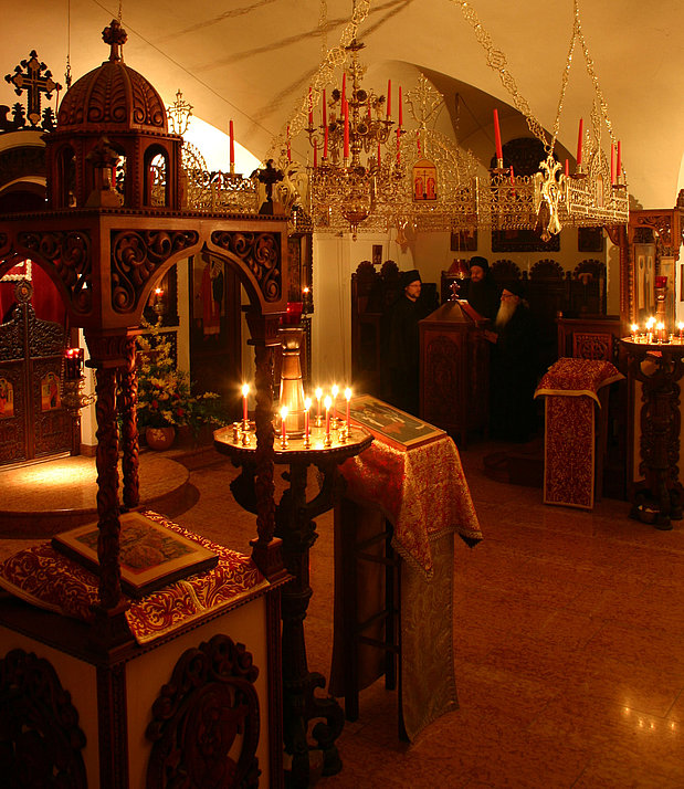 Da die alte byzantinische Kapelle für die wachsende Zahl der Gottesdienstbesucher zu klein wurde, hat man 1986 in einem alten Trakt des Klosters eine größere Kirche und eine Kapelle eingerichtet, die beide dem in Ost und West verehrten heiligen Bischof Nikolaus von Myra geweiht sind.