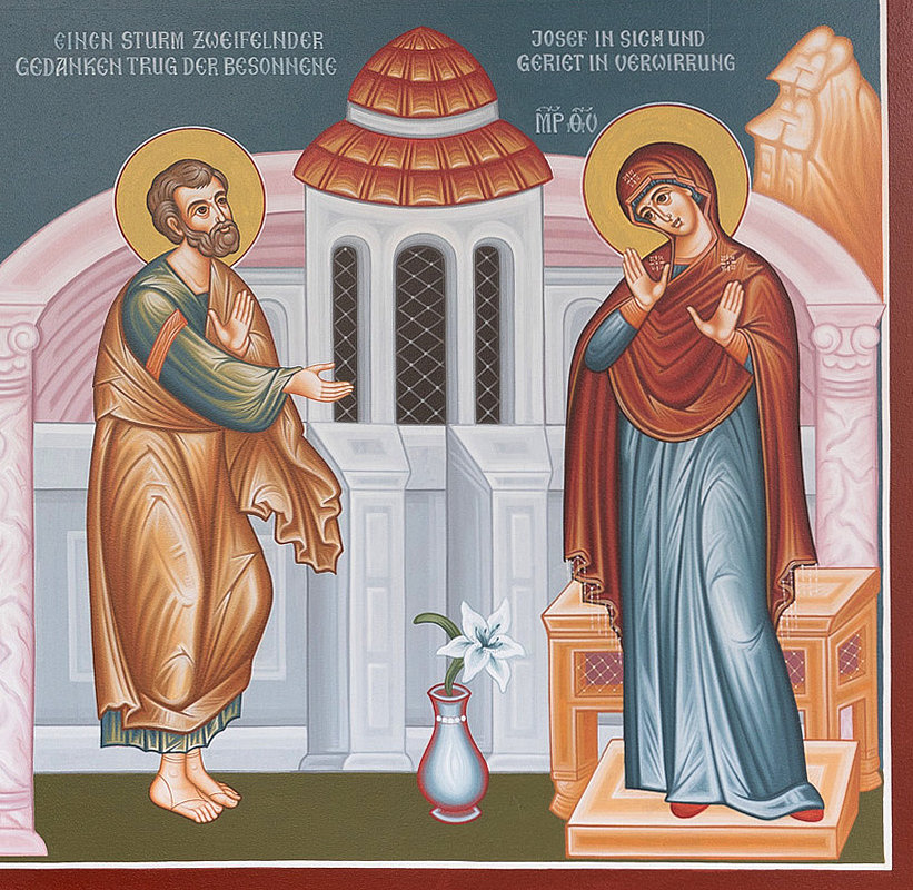 Maria "war mit Josef verlobt; noch bevor sie zusammengekommen waren, zeigte sich, dass sie ein Kind erwartete - durch das Wirken des Heiligen Geistes. 19 Josef, ihr Mann, der gerecht war und sie nicht bloßstellen wollte, beschloss, sich in aller Stille von ihr zu trennen. 20 Während er noch darüber nachdachte, siehe, da erschien ihm ein Engel des Herrn im Traum ..." (Mt 1,18-20)