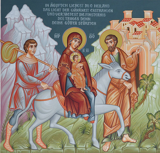 In Ägypten ließest Du, o Heiland, das Licht der Wahrheit erstrahlen und verjagtest die Finsternis des Truges; denn seine Götter stürzten, als Du kamst und sie Deiner Macht nicht standzuhalten vermochten. Die von ihnen Befreiten aber riefen der Gottesgebärerin zu: