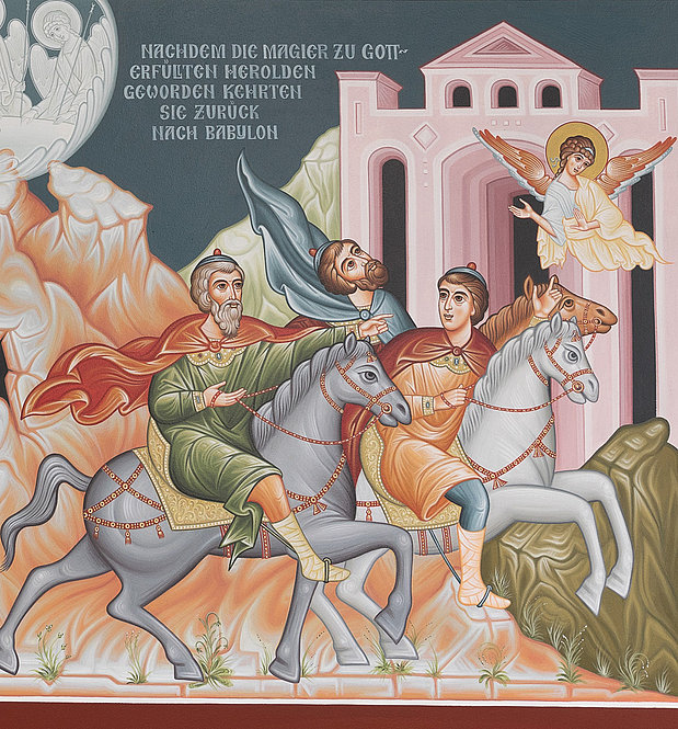 Nachdem die Magier zu gotterfüllten Herolden geworden, kehrten sie zurück nach Babylon; dort erfüllten sie die Prophezeiung über Dich, o Christe, indem sie allen Dich verkündeten; den heuchlerischen Herodes aber übergingen sie, da er zu singen nicht verstand: Alleluja.
